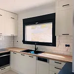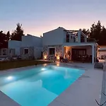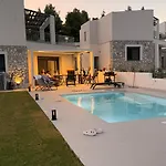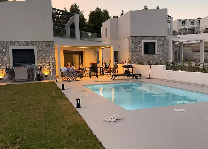 In einer kompletten Küche von der Villa Sanistonevillas gibt es einen Herd und einen Geschirrspüler. Die Unterkunft in Kassandria verfügt über eine Terrasse, wo Sie sich nach einem anstrengenden Tag entspannen können, sowie über einen privaten Swimmingpool.